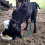 Ya en su casa donde convive con sus cuatro perros y una hembra más rescatada de la calle apodada Heidi, le dio de comer, de tomar y empezó a organizarse para procurarle atención veterinaria y medicación para la sarna. También comprobó que está en celo.