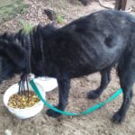 Un vecino atento y comprometido le preparó una bolsa de alimento, otra vecina pasó por Zoonosis para buscar dosis de la medicación para tratar la sarna y esta tarde la veterinaria de la zona, Valeria Ruffino, pasó a verla para evaluar su estado de salud.