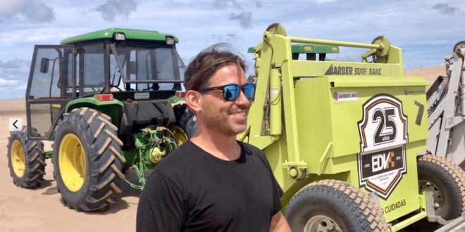 Si bien ese es un tema que lo preocupa, su atención casi diaria tiene que ver con la basura en la playa y el trabajo de la máquina Barber que le presta servicio al municipio para limpiarla.