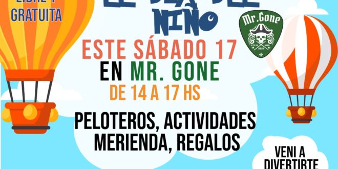La tarde anterior al domingo del Día del Niño, Jerónimo y Yanina de Mr. Gone invitan a celebrar una tarde con juegos, merienda y entretenimientos en el bar de la calle Mar del Plata entre 41 y 42 en Mar Azul.