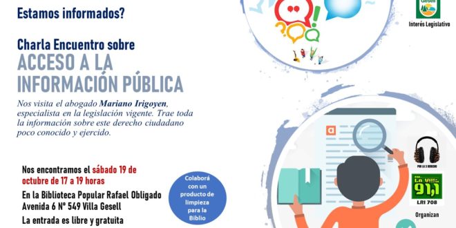 La visita en Villa Gesell del abogado especialista en Acceso a la Información Pública, Mariano Irigoyen, tiene como objetivo acercarle a los vecinos en general, integrantes de asociaciones, comunicadores y funcionarios la importancia de conocer este derecho, entender su alcance y la garantía a la libertad de expresión y opinión que al ejercerse, promueven la participación ciudadana.