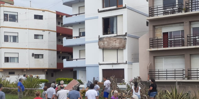 Sucedió esta mañana temprano en un edificio de departamentos de tres pisos llamado Gufi Yiyo ubicado en Costanera a metros de la calle 301. El del tercer piso arrastró los otros dos. No hubo heridos y trabajaron en el lugar bomberos para remover la mampostería que quedó colgando.»Se clausuraron el resto de los balcones hasta que el municipio realice mañana una inspección», afirmó Hugo Piriz, jefe de bomberos.