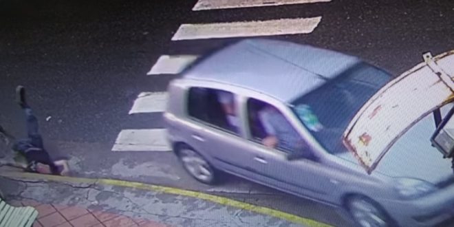 La imagen registró que hombre cayó sobre la cinta asfáltica y el vehículo continuó su trayecto por la Avenida 3 en dirección al Norte. La cámara justo toma la escena cuando el hombre de Lanus, turista, cae a la calle y se golpea con el cordón.
