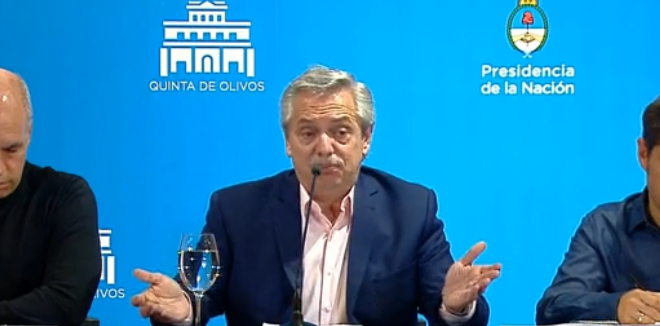 «Tenemos que luchar contra la pandemia y contra la psicosis», expresó el mandatario en la conferencia de prensa, en la que anunció las medidas para parar la circulación del Coronavirus, después de la reunión mantenida en Olivos con los principales funcionarios del gobierno durante la tarde de hoy.