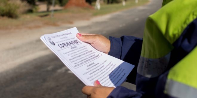 Diversas áreas del municipio, comenzaron una campaña con la entrega de folletería con fines de concientización y prevención del coronavirus, que se distribuye en distintos puntos de la ciudad, generalmente en las mayores zonas de influencia como es el centro de la ciudad y los accesos a la ciudad, tanto los de Villa Gesell como los de Mar de las Pampas y Mar Azul.