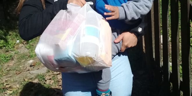 La modalidad para respetar la cuarentena fue entregar las bolsas a dos