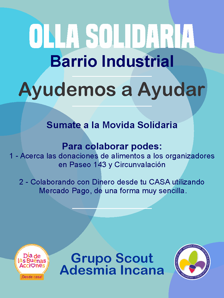 Bajo la iniciativa “Ayudemos a Ayudar”, el Grupo de scouts pide colaboración para el proyecto de las viandas que se hacen en Paseo 143 y Avenida Circunvalación.