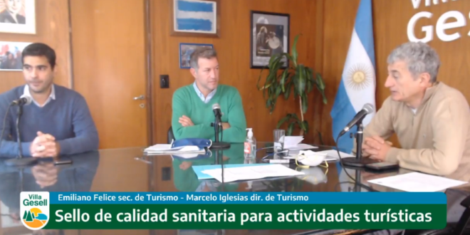 El trabajo denominado Directrices de Calidad Sanitaria para Actividades Turísticas fue presentado esta mañana por Gustavo Barrera y los funcionarios responsables del área, Emiliano Felice y Marcelo Iglesias. Sobre el sello de calidad sanitaria para gastronómicos, alojamientos y concesionarios de playa, el intendente dijo: «Queda definir si será obligatorio».