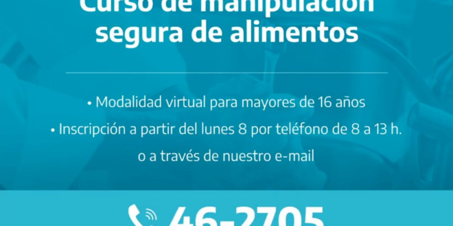 Lo confirmó Nazareno Alvarez del área de Bromatología, que aclaró que a partir del lunes 8 ya se podrán anotar los interesados y en la semana del 15 de junio iniciará. La capacitación se validará después del 31 de diciembre con un exámen presencial.