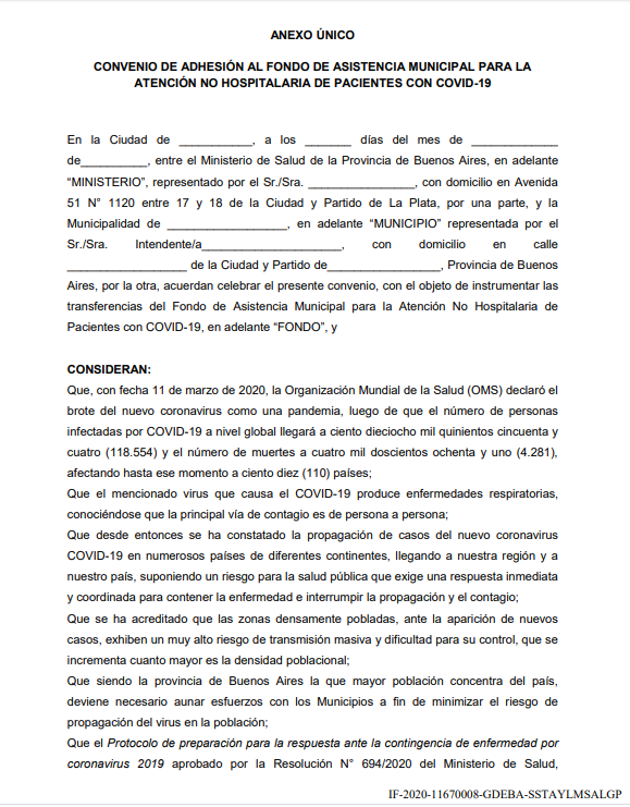La letra chica del acuerdo de Fondo de Asistencia Municipal para la Atención No Hospitalaria de Pacientes con COVID-19
