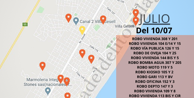 Los realizadores del mapa explican que buscan «plasmar en un mapa mes a mes todos los delitos que ocurren en Villa Gesell» y piden que las autoridades «No minimicen lo que está pasando, no es una sensación ni una exageración ni hay fines políticos detrás», expresó Fernando, uno de los vecinos que impulsó la iniciativa.