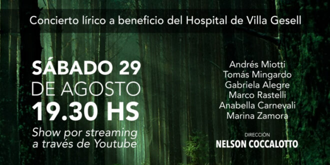 El sábado 29 de agosto, a las 19.30, se llevará a cabo una nueva presentación de Mar de las Pampas en Concierto mediante la plataforma de YouTube. En esta oportunidad, la Fundación Mar de las Pampas en Concierto organiza una una gala lírica solidaria a total beneficio del Hospital Municipal Dr. Arturo Illia que contará con la dirección de Nelson Coccalotto.