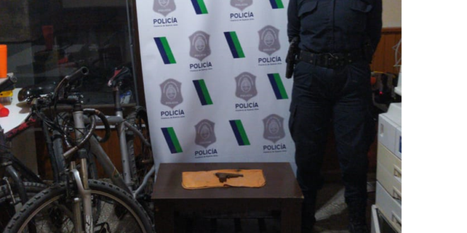 Efectivos policiales de la Comisaría Primera debieron intervenir ayer en un domicilio de Paseo 107 al 700, debido a un pedido de auxilio de una vecina que alertó sobre la presencia de su novio, que estaba armado y agresivo. El hombre fue detenido y se secuestraron bicicletas, una de ellas robada, como un cajón con envases de cerveza vacíos, hurtados en en supermercado.