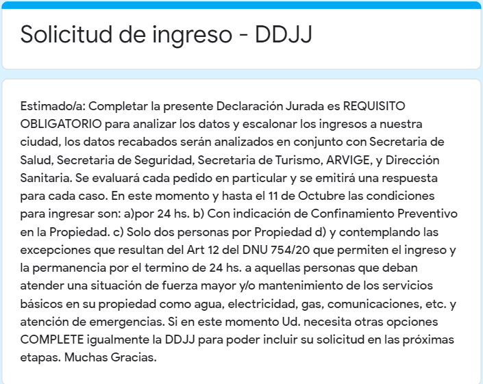 Como se había adelantado la semana pasada, en el día de hoy ya figura en el portal del municipio http://www.gesell.gob.ar/ el botón que linkea al documento de Declaración Jurada que deberán completar los propietarios no residentes que quieren volver a sus casas. Especifica que el permiso será para dos personas por 24 horas y que deberán realizar confinamiento.