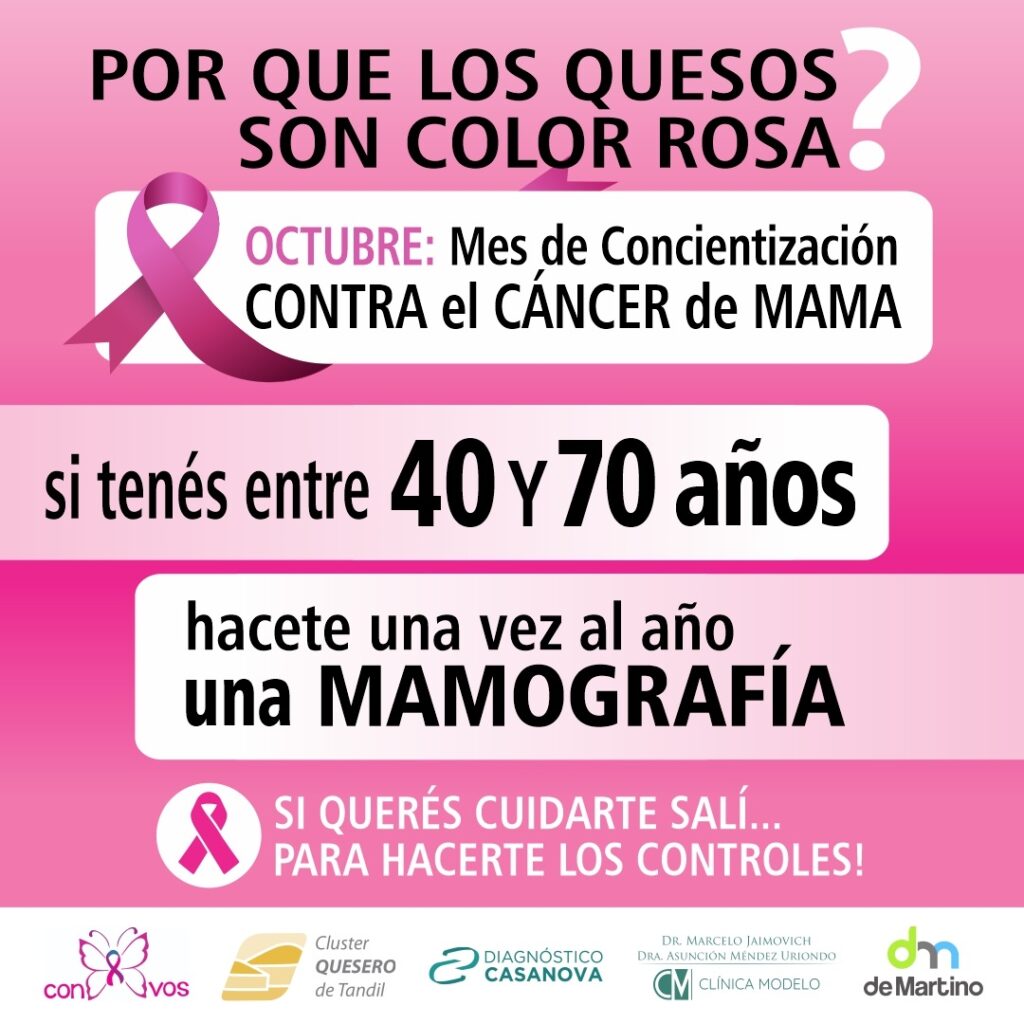 Desde las queserías muestran su gratitud y felicidad de poder llevar adelante esta iniciativa visibilizando un tema tan importante. Junto con especialistas están difundiendo información acerca de cómo efectuar las mamografías, que tienen que hacerse en mujeres de entre 40 y 70 años fundamentalmente, todos los años porque después de los 70 años pueden hacerse cada dos años.