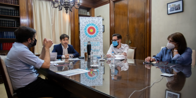 Estuvo acompañado por el jefe de Gabinete, Carlos Bianco; el ministro de Infraestructura y Servicios Públicos, Agustín Simone; la ministra de Gobierno, Teresa García; y, en forma remota, por las y los intendentes de los distritos beneficiados.