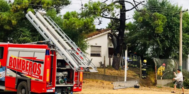 Una mañana de arduo trabajo de los bomberos, que a causa del fuerte temporal que azotó a toda la región, debieron asistir a los vecinos en distintos puntos de la ciudad.