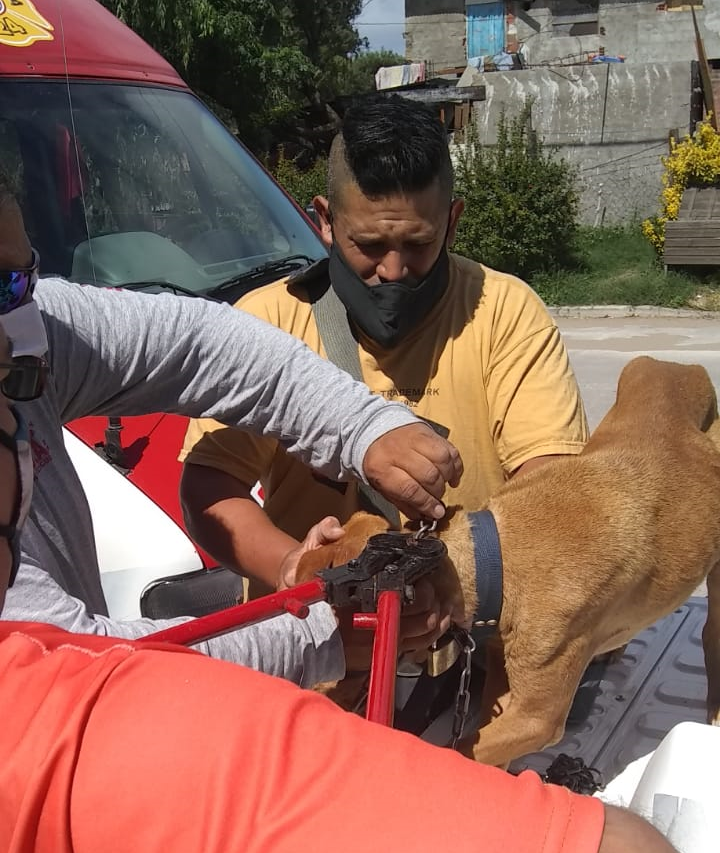 El procedimiento a cargo de la policía y de Genaro Almiron del área de Zoonosis fue solicitado por el fiscal Eduardo Elizarraga. El rescate se hizo en una casa de la calle 31 al 3200 en Monte Rincón. Encadenado al sol y notablemente descuidado, el perro fue protegido en el marco de una infracción a la ley 14.346. En el patio de la vivienda, en la que no se hallaban moradores al momento del allanamiento, se halló además el cadaver de un can.