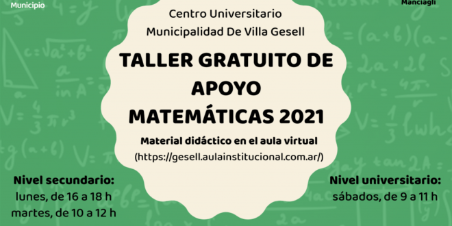 La Dirección de Educación, a cargo de Julio Fernández, informa a la comunidad que ya se dio inicio a los talleres de apoyo matemático para los niveles secundario y universitario.