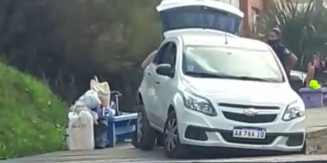 Insólito: Un auto circulaba por la rambla y quedo encajado