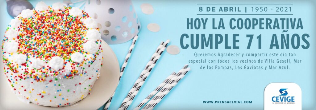 Hoy Cevige Ltda cumple 71 años de servicio en todo el partido de Villa Gesell y agradece «a cada uno de los pioneros, vecinos, usuarios y cada uno de los que permitieron que esta Cooperativa se parte fundamental de la comunidad, desde que el fundador de la ciudad, Carlos Gesell, fundó también esta empresa».