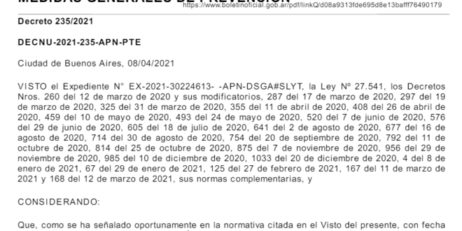 DNU presidencial: https://www.boletinoficial.gob.ar/web/utils/pdfView?file=%2Fpdf%2Faviso%2Fprimera%2F5282323%2F20210408%3Fsuplemento%3D1