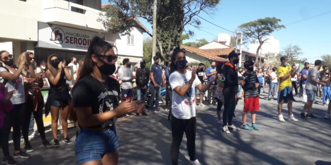 La manifestación comenzó como estaba pautada a las 12:30 del mediodía en la Plaza Carlos Gesell. Más de un centenar de vecinos y vecinas que trabajan y concurren a espacios deportivos de la ciudad, participaron de un reclamo para pedir que se abran las restricciones impuestas por el decreto municipal, que impide no solo el acceso al deporte como disciplina sino también como hábito saludable, además de generar desocupación y cierre de emprendimientos deportivos, con sus respectivas consecuencias. «Reclamamos trabajo dentro de los protocolos que usted disponga», dice el texto del petitorio dirigido al intendente Gustavo Barrera, que de forma manuscrita se realizó al fin de la manifestación en la puerta del municipio, para juntar firmas y presentarlo en la mesa de entrada.