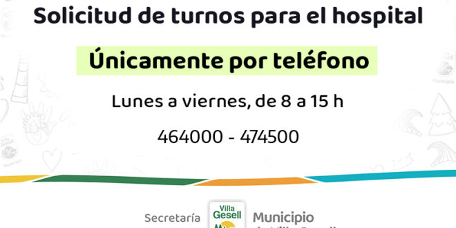 La Secretaría de Salud, a cargo de la dra. Lorena Romero Vega, informa a la comunidad que aquellas personas que necesiten obtener un turno para recibir atención en consultorios médicos en el Hospital municipal ‘‘Arturo Illia’’ deberán hacerlo exclusivamente por vía telefónica, ya que es el único medio.