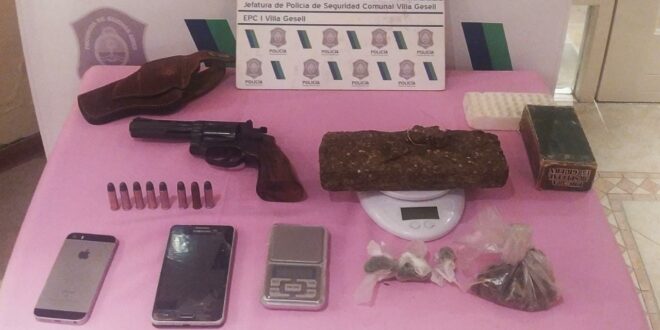 Se secuestró un aparato celular marca Samsung que fuera desapoderado; un aparato celular marca Apple modelo IPHONE; un Revolver calibre 38 Special marca Rossi, caja con ocho municiones intactas mismo calibre; pistolera color marrón, un ladrillo de marihuana, cuatro bagullos, y picadura de dicha sustancia que arrojaron un pesaje total de 363.3 grs., y una balanza digital. En el lugar se aprehendió a un hombre de 76 años que se encontraba en el lugar y por otro lado, se confirmo la detención de uno de los delincuentes y se le inició 3 causas, por tenencia ilegal de arma de fuego, por tenencia de estupefacientes con fines de comercialización y el robo del teléfono perpetrado días atrás.