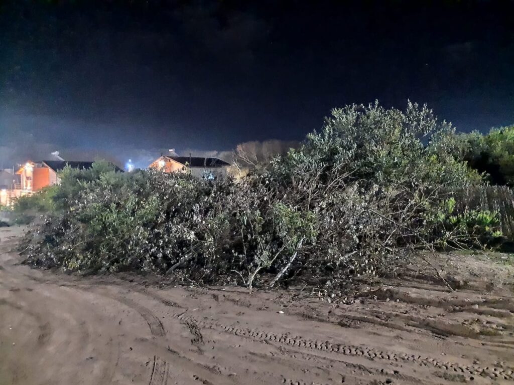 Se trata del dueño de la obra de la calle 44 entre playa y Mar Azul, en Mar Azul, que fue denunciada y la municipalidad amenazó con demoler por las irregularidades cometidas a la hora de su levantamiento. El escándalo por la gran estructura de cemento fuera de norma dejó en evidencia a funcionarios municipales por permitir que avance a pesar de la violación del reglamento. Ahora, la familia vecina que plantó una fila de álamos para evitar el contacto visual con la gran edificación, denuncia la poda de los 30 árboles de los que quedaron solo troncos pelados. Aún están sobre la calle e impidiendo el paso las ramas, que como señaló la mujer, cortaron «violando mi propiedad».