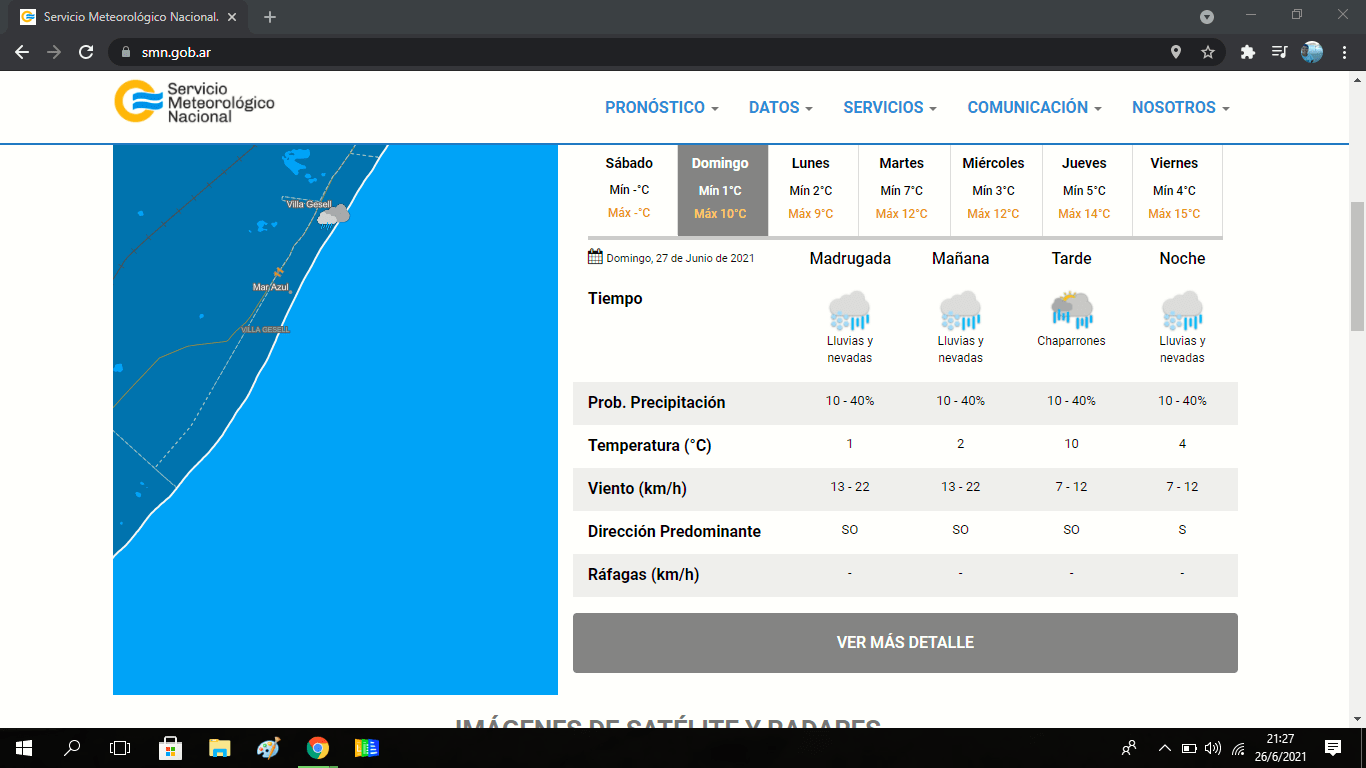 El Servicio Meteorológico Nacional (SMN) anunció que este domingo se espera que la ciudad amanezca cubierta de nieve. Se espera que la temperatura máxima alcance los 10 grados. La última vez que nevó en Gesell, fue en Agosto de 1999. ¿Caerá nieve en la ciudad?