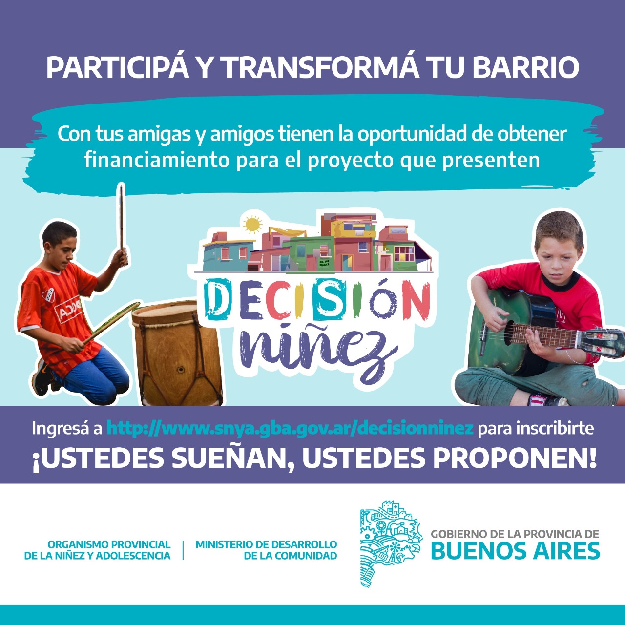 El programa de la provincia de Buenos Aires despliega las posibilidades materiales para que se concreten proyectos soñados por niñas y niños, al tiempo que promueve el fortalecimiento de las relaciones comunitarias para acompañar los procesos y las propuestas que se generen. A partir de los siguientes interrogantes: ¿Cómo podrían mejorar su barrio? ¿Cómo les gustaría ayudar a niñas, niños y adolescentes? ¿Tienen alguna idea? ¿Tienen muchas?, los chicos y chicas que deseen inscribirse podrán formar parte del programa provincial.