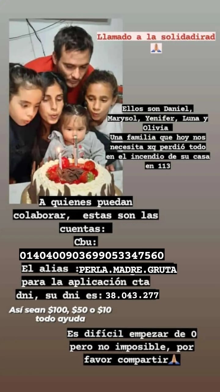 Ahora, además del esfuerzo que los espera a pesar de la tristeza, necesitan la colaboración de quienes puedan ayudarlos. Por eso comunicaron una cuenta para ello.