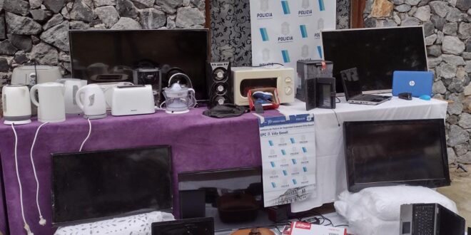 En el primer objeto sito en avda. 9 y paseo 115 de Villa Gesell se secuestraron DVR y cámaras de seguridad sin instalar , e pares de zapatillas Nike, una cafetera masra Oster, una riñonera, un TV Smart de 42 pulgadas marca LG, 2 acolchados, mouse azul de computadora y cuchillos.