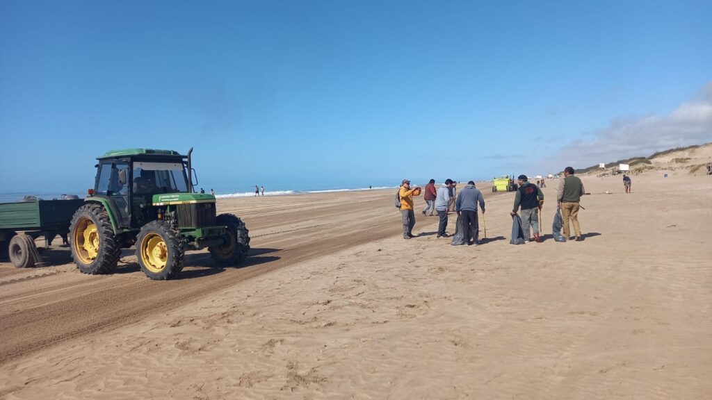 Instituciones de las localidades del sur (PROA, SOFO MDLP y Asociación de Emprendedores Turísticos de Las Gaviotas) se reunieron en la playa junto a empleados del corralón municipal para llevar adelante una jornada de limpieza en las playas de Mar de las Pampas, Las Gaviotas y Mar Azul con la ayuda de la maquina barredora contratada por el municipio.