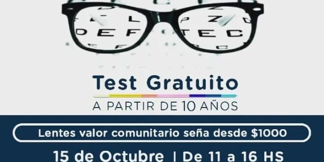 «No te pierdas esta oportunidad de cuidar tu salud visual! Acercate a nuestro local en Boulevard n°2245 y 122 desde las 11 hasta las 16 hs. La coordinadora de la jornada es Vilma Gómez, que ha llevado a cabo varias de estas acciones tan necesarias para los vecinos de Gesell.