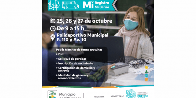 Se desarrollará el lunes 25, martes 26 y miércoles 27 de octubre en el Polideportivo Municipal, ubicado en Paseo 110 y Avenida 10, de 9 a 15 horas, y se darán 400 turnos diarios. El programa de documentación del Ministerio de Gobierno de la Provincia de Buenos Aires tiene como objetivo garantizar la identidad de las y los geselinos para realizar trámites.