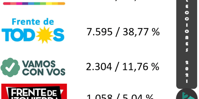 Vamos con Vos sumó 2.304 votos (11,76 por ciento) y la Izquierda 1.058 (5,4 por ciento),