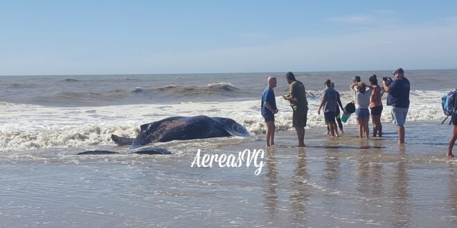 Una dotación de bomberos, Verdemar, guardavidas, guardaparques, personal municipal y vecino, con mucha fuerza y eslingas, al segundo intento pudieron meter al agua al animal y perderlo de vista. Se trató de una cría de ballena Franca.