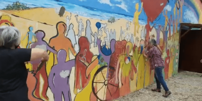 En el Día Internacional de las personas con Discapacidad, artistas geselinos terminaron el mural en Arco Iris, que fue comenzado por el boceto inicial de alumnos de la escuela Secundaria 4 y luego pintado e intervenido por los chicos y chicas del taller de cerámica de la institución. Un gran trabajo colaborativo resultó en esta obra maravillosa.