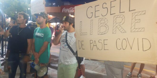 Vecinas y vecinos que se autoconvocaron anoche en la Plaza Primera Junta para recolectar firmas con el fin de solicitar que Villa Gesell no adhiera a la medida del gobierno provincial que exige a la ciudadanía la presentación de la vacunación contra el covid para ingresar a dependencias estatales y puedan participar de ciertas actividades, presentan esta mañana en la municipalidad un escrito dirigido al intendente Gustavo Barrera acompañado de más de 200 firmas. «Gesell libre. No al pase sanitario», es la consigna de jóvenes y adultos que se oponen a las restricciones que cercenan los derechos individuales en el marco de un plan de vacunación que es optativo.