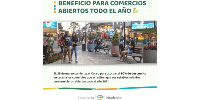 La Secretaría de Hacienda Municipal informa que a partir del sábado 26 de marzo empezará a realizarse el Censo Abierto Anual, establecido por el Artículo 182 de la Ordenanza Fiscal 2156/08 y modificatorias, reglamentado por el Decreto 170/22. Locales abiertos todo el año en el ejercicio fiscal 2021 y que no posean deuda municipal, tendrán un descuento del 60% en la tasa de inspección y/o Seguridad e Higiene.