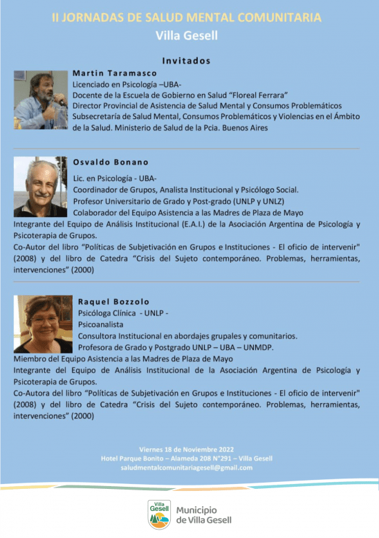 – 11:00 hs Mesa II – Internaciones, guardias y dispositivos comunitarios en Salud Mental y Consumos Problemáticos