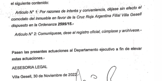 Una serie de inspecciones hechas al balneario cedido a la sede de la Cruz Roja en Villa Gesell da por resultado el pedido del intendente Gustavo Barrera al Concejo Deliberante, para que de marcha atrás con el comodato vigente.