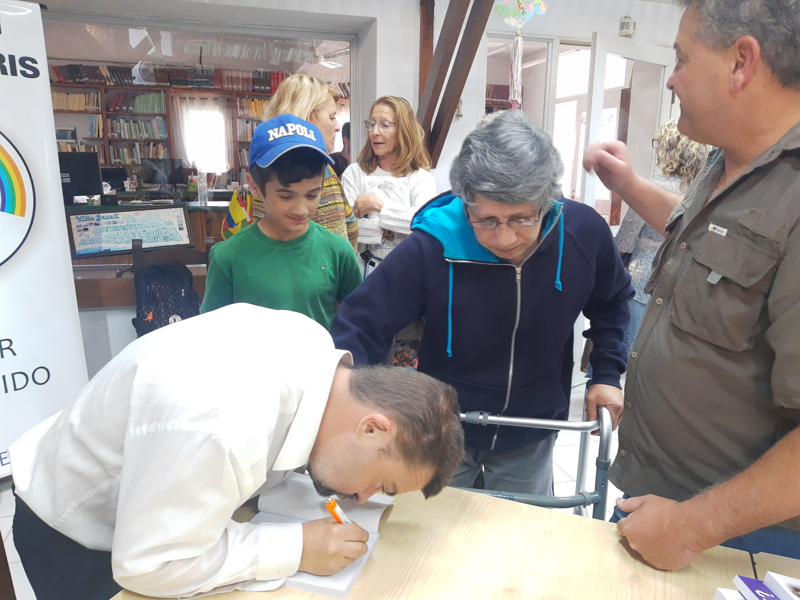 El autor contestó preguntas de los presentes, vendió algunos ejemplares y disfrutó de una video llamada muy especial que lo emocionó, el saludo en vivo de su acompañante terapéutico, Ricardo, que fue clave en la elaboración del libro, un método utilizado como recurso terapéutico y que superó las expectativas de todos.