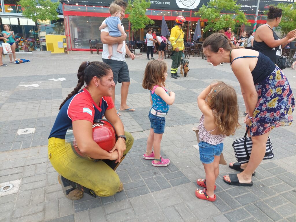 Familiares de bomberos y vecinos y vecinas que fueron especialmente a acompañar la convocatoria de los héroes y heroínas geselinas, luego cantaron el himno a capella.
