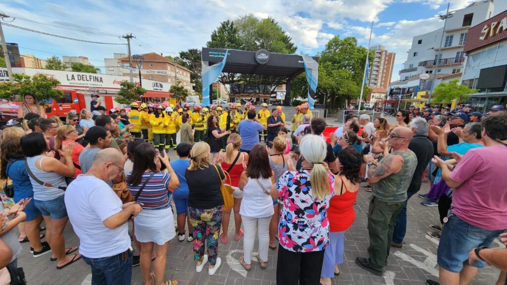 Los bomberos Voluntarios de Villa Gesell realizaron un encuentro ayer en la Plaza Primera Junta esta tarde para remarcar su repudio a los lamentables dichos de Sergio Federovisky, vice ministro de Ambiente de Nación. En funcionario nacional tuvo expresiones maliciosas y desestimadoras respecto de la labor bomberil. Vecinos y turistas se hicieron presente y se notó la ausencia del intendente y funcionarios municipales. «Queremos que el viceministro se retracte, de la misma forma que se manifestó en un canal nacional», expresó en su mensaje Hugo Piriz, jefe del cuartel central geselino.