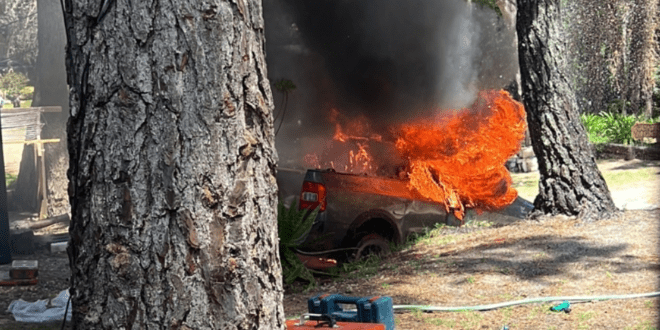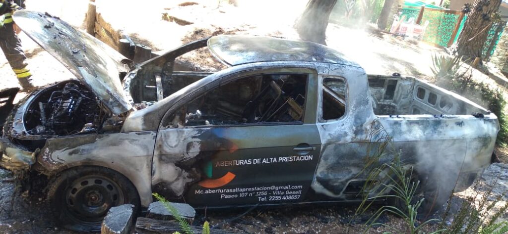 Sucedió en la calle 43 entre Punta Indio y Pinamar a las 14 horas. Bomberos acudieron al siniestro ante el alerta de vecinos. El vehículo de trabajo de un local de aberturas de Villa Gesell quedó destruido.