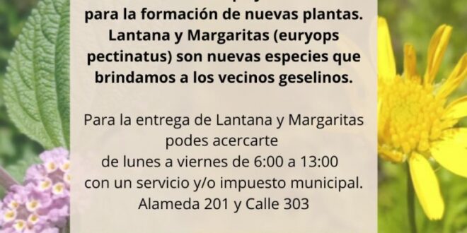 Para la entrega de Lantana y Margaritas podes acercarte de lunes a viernes de 6:00 a 13:00 con un servicio y/o impuesto municipal a