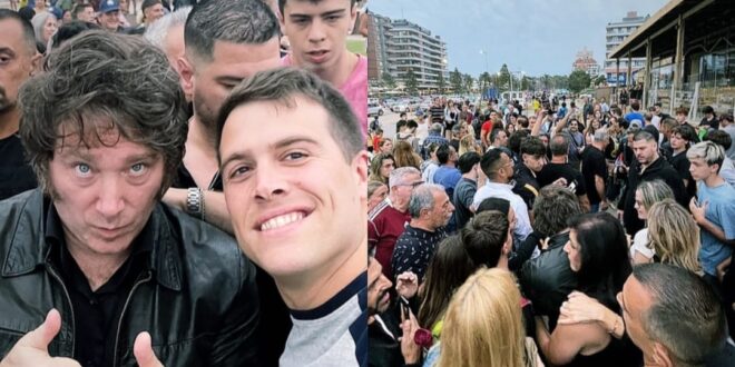 Al grito de “se siente, se siente Milei presidente” y ante un centenar de personas, Javier Milei pasó por la localidad vecina de Pinamar.
